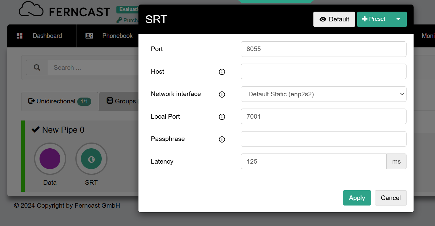 SRT streams including EDI tend to require a larger buffer to accommodate third-party receivers. If you encounter such issues, try to adapt the following configuration. Note that you have to enable the Expert view to have all the options available.
